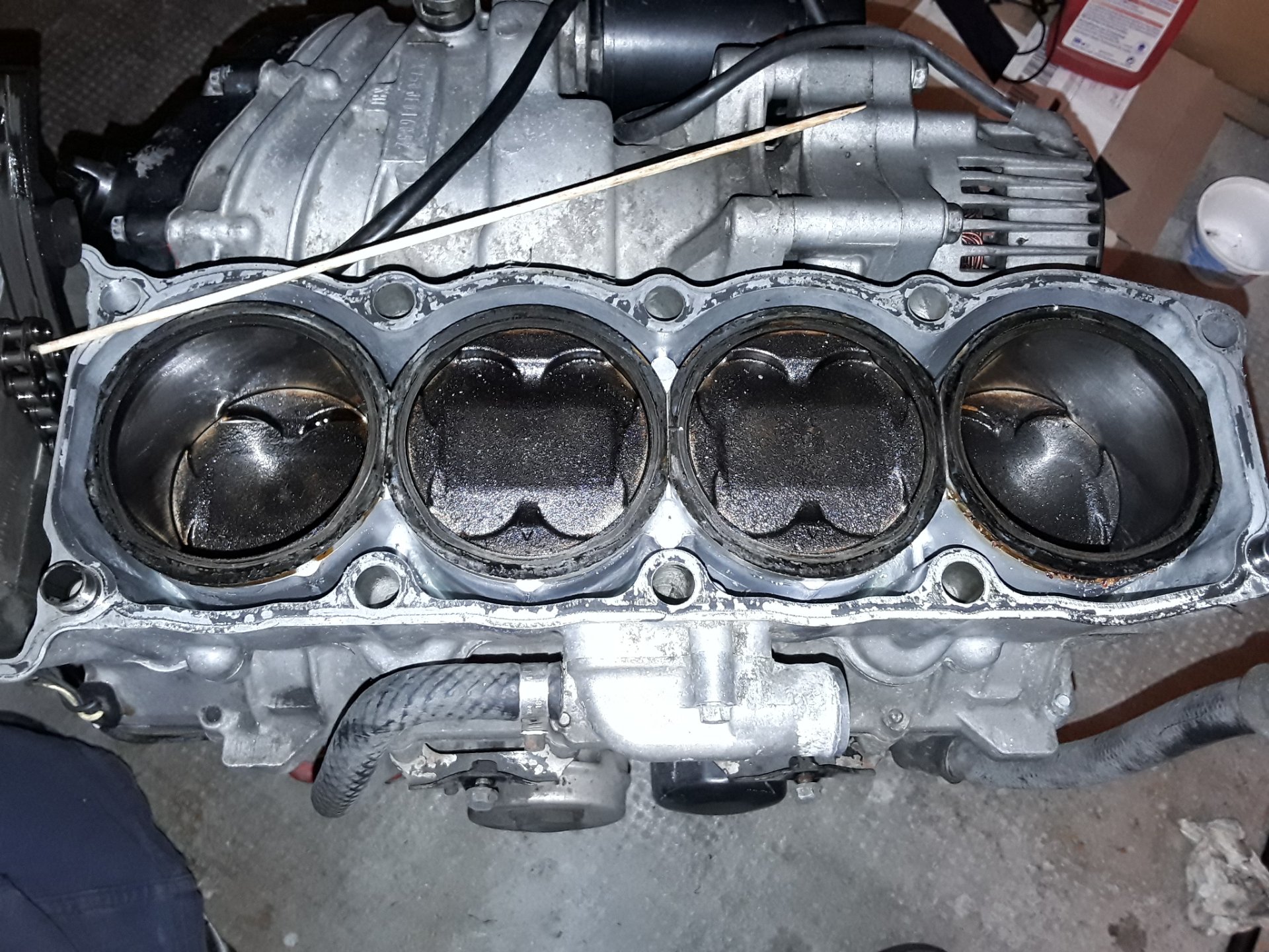 Nach 800km waren die Einlässe und Ventile von Zylinder 1 komplett sauber, von 2 fast sauber, 3 leicht verschmutzt und bei 4 waren bei einem Ventil schon wieder etwas krustige Stellen. Keine Ahnung, warum es von links nach rechts so ein Gefälle hat. Die Toleranzen waren bei allen ungefähr gleich.