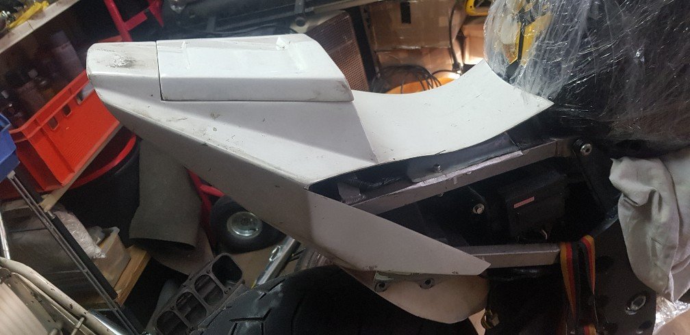 Hatte mir gedacht unterhalb ein alublech/lochblech mit einem scher -/stossfesten und bruchfesten kleber nach formen ein zu kleben und dann obergalb mit GFK beiarbeiten .....