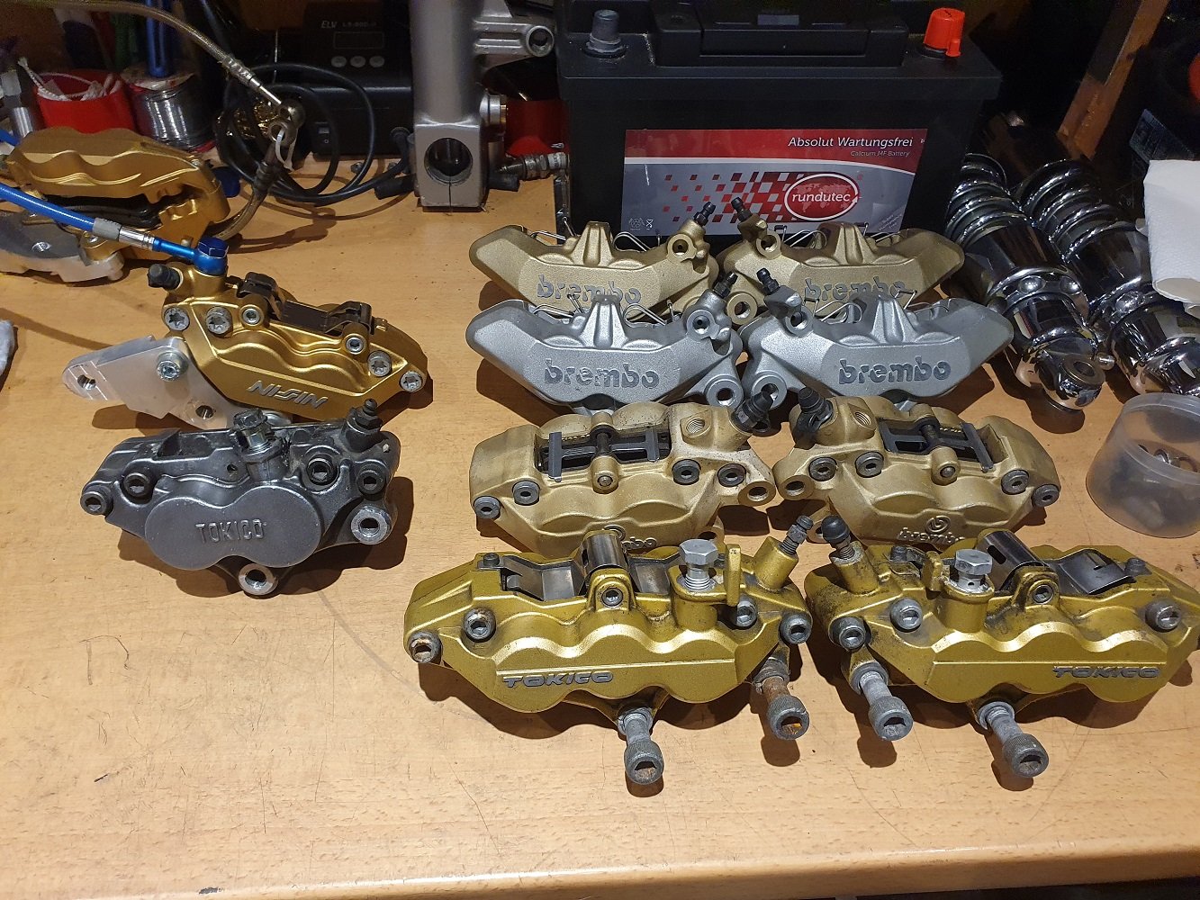 Mein Kumpel Andy ist ein "Gewichtsfetischist" und baut sich die klassischen 40mm Brembo P4 34/30 an seine Renn ZXR.