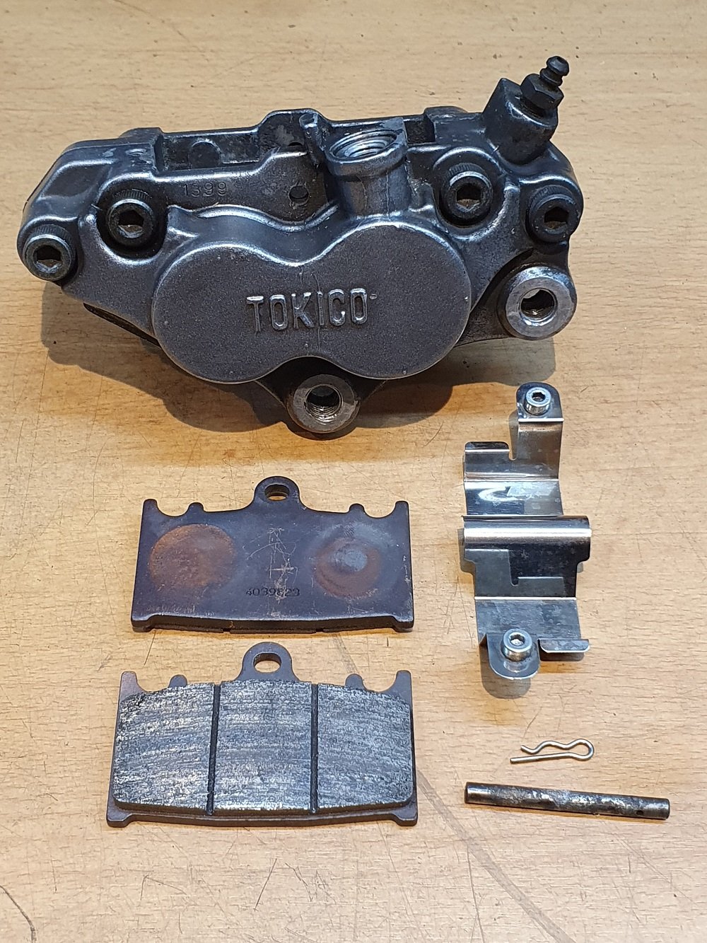 Die originalen Tokico Bremssättel mit 4 Kolben (34/27mm) 63mm Aufnahme