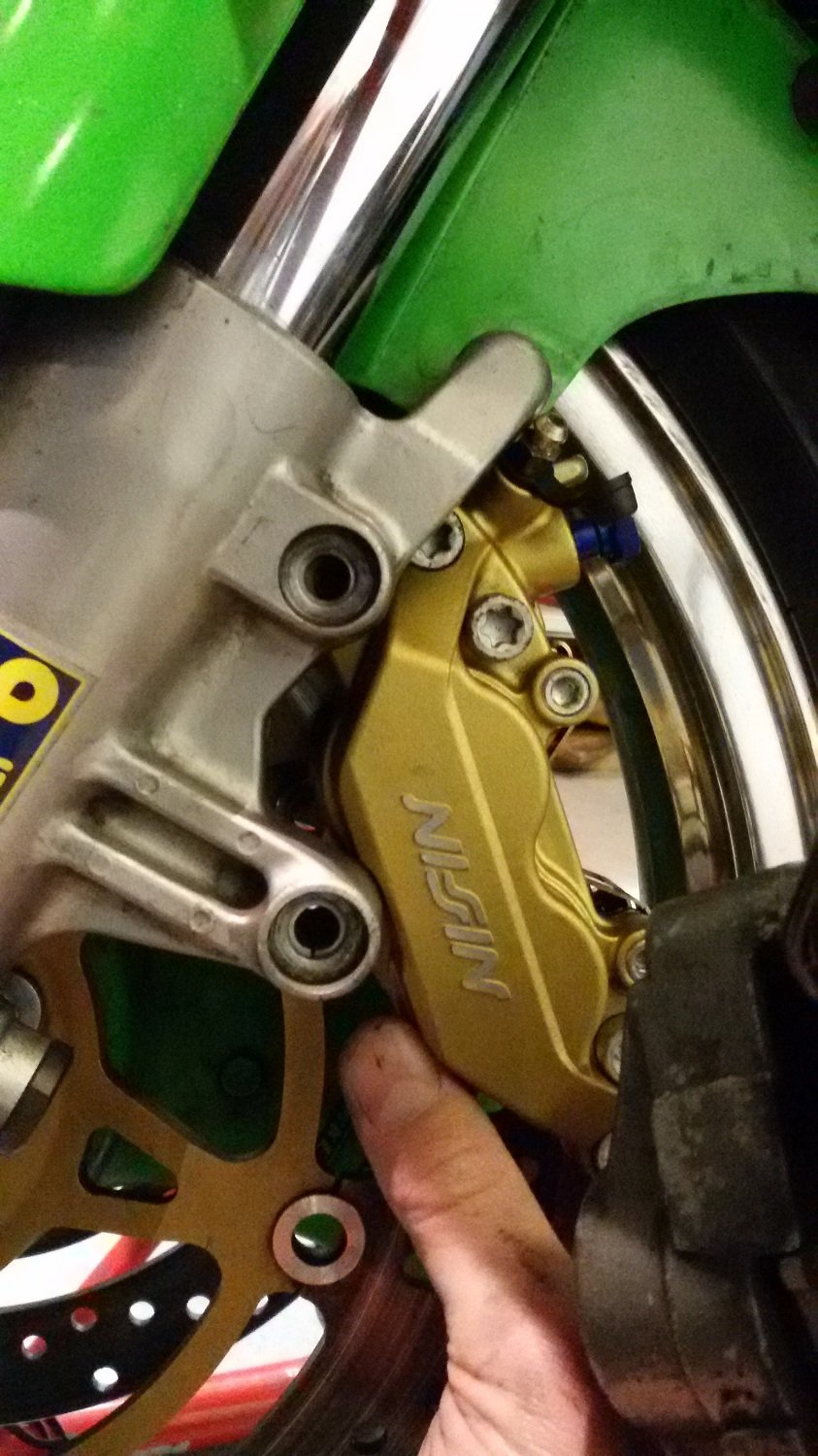 Der Versuch Nissin Bremssättel mit 62mm Lochabstand zu verbauen scheiterte leider um 3mm.