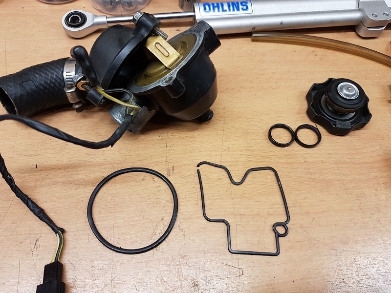 Zylinderkopf, eingelaufene Schlepphebel, zwei defekte Auslassventile, Wasserpumpe, Kettenspanner, Ölansaugschnorchel und diverse Dichtungen...