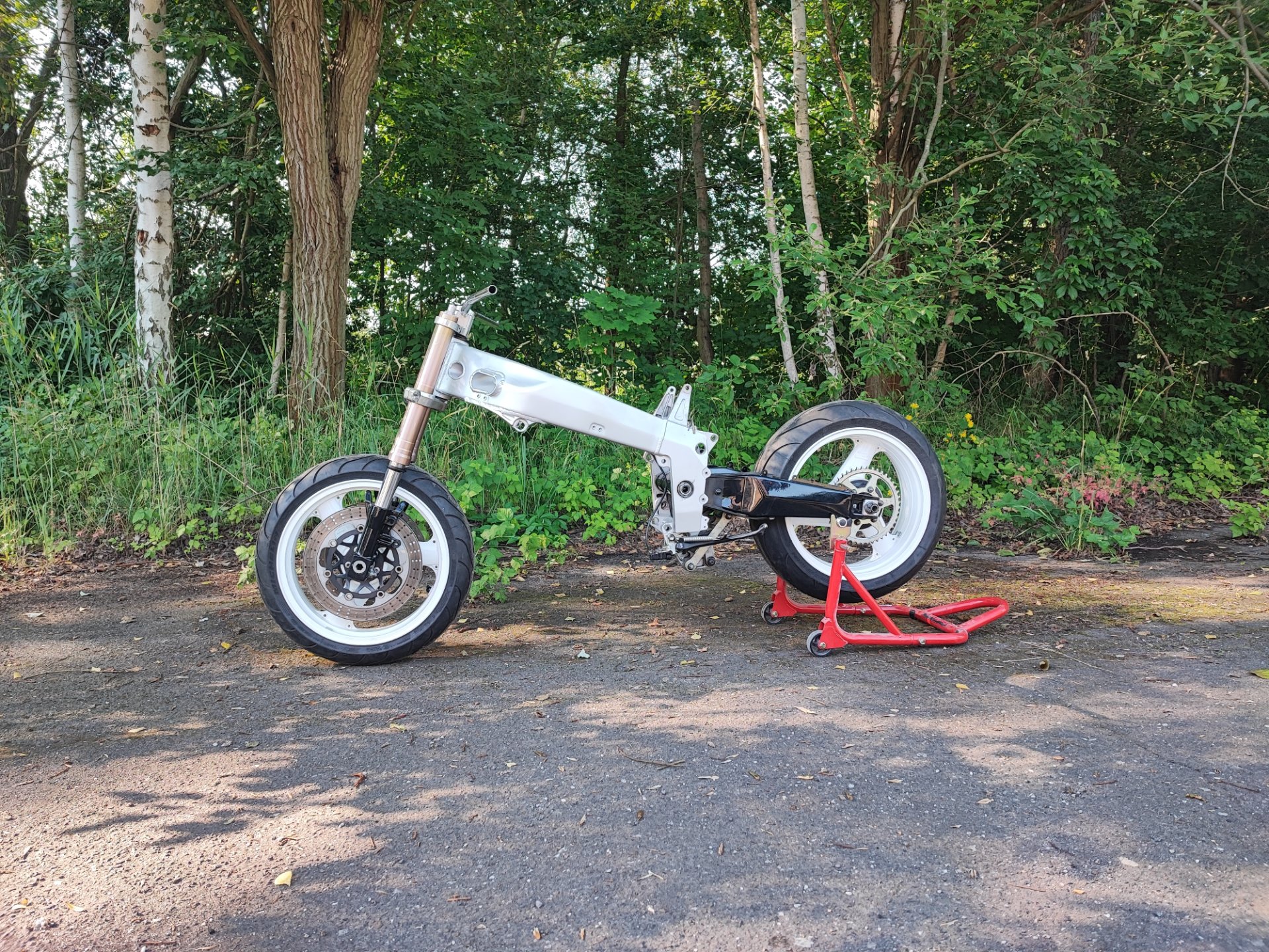 Berechtigte Frage :D ich hab in meinem Lager tatsächlich noch einen gekürzten Soziusheckrahmen aber ich hatte Bock etwas anderes zu bauen und mein Kumpel hat auch ständig Bock irgendwas zu schweißen 🤣🤣