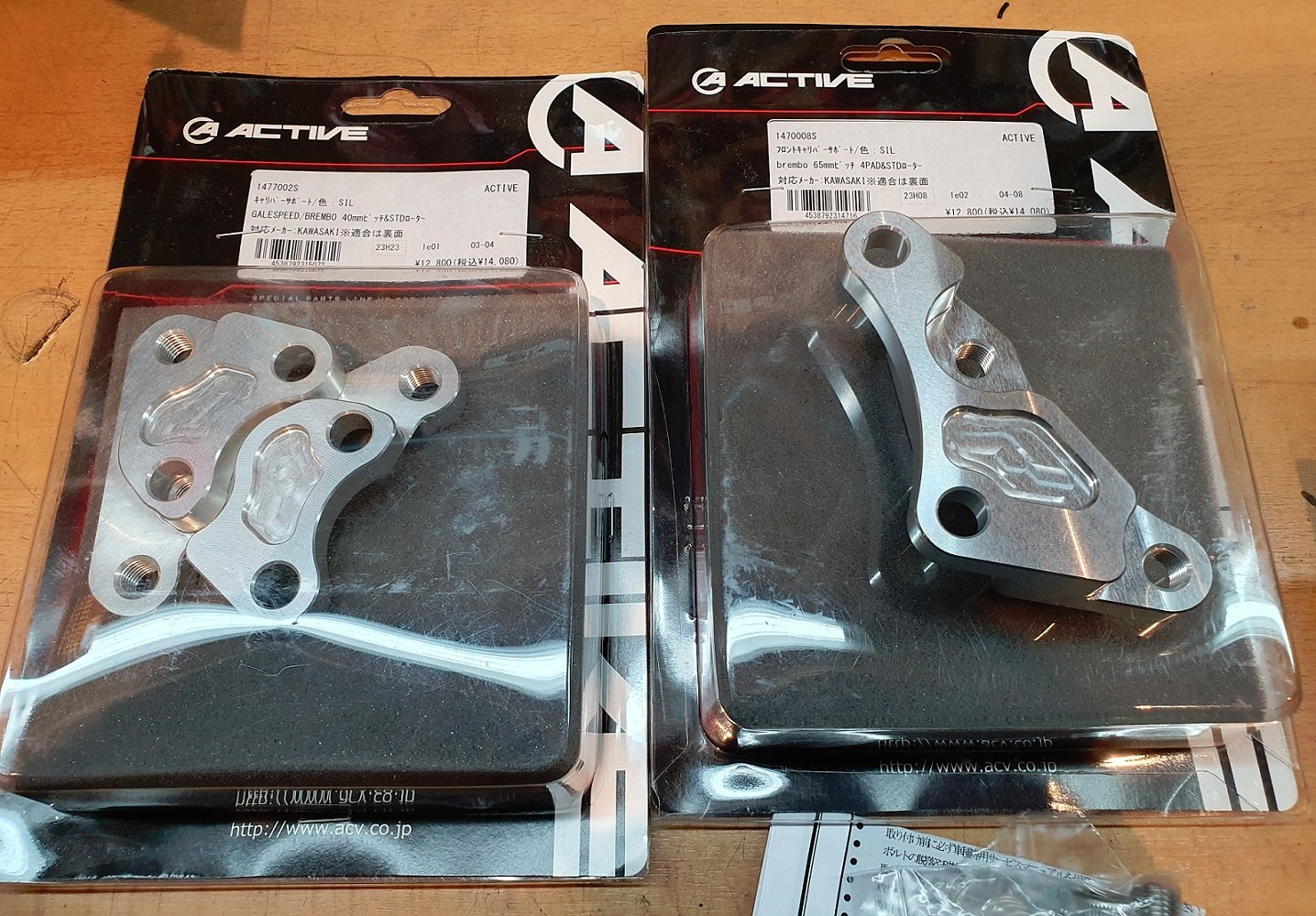 Hier eine kleine Übersicht an vorderen Bremszangen für unsere alten Ladys. Und die Adapter für 65mm und 40 mm aufnahmen. Diese gibt es aktuell noch bei "Webike" in Japan.