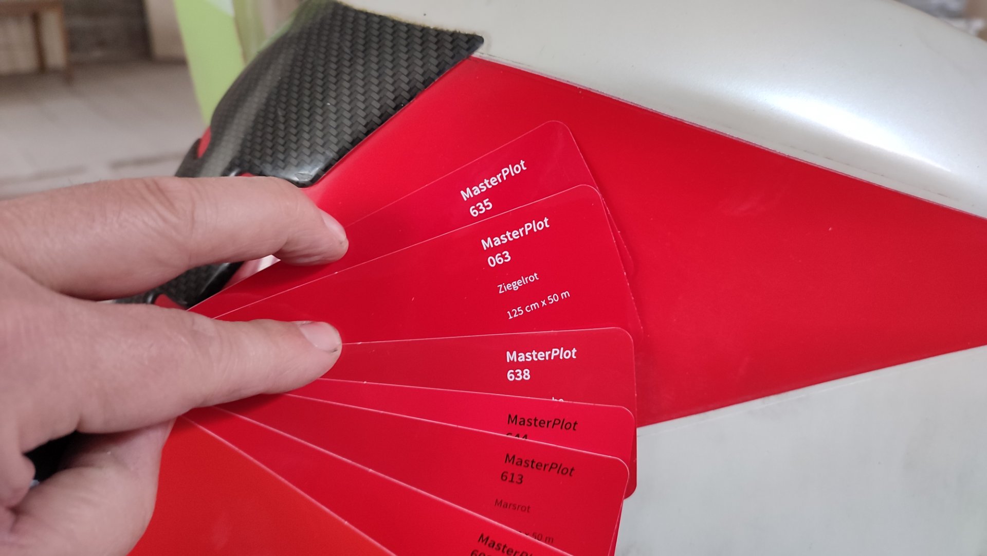 es ging um die Farbe der Folie, hier braucht der Aufklebermann Angaben zu.