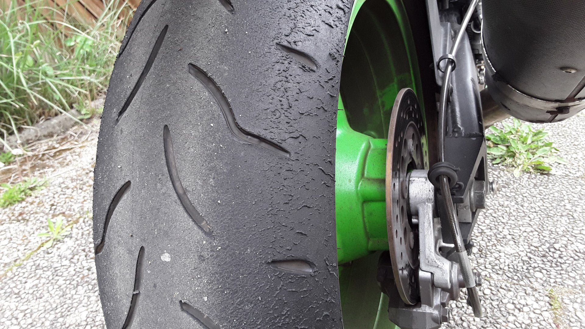 Reifen von der Profiltiefe noch ziemlich unbeeindruckt von der Laufleistung.