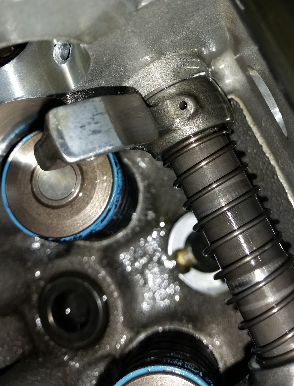 Aber zieh trotzdem mal die Schlepphebelwelle raus bzw anders, drück die Schlepphebel gegen die Federn und schau nach, ob jeweils die beiden Einlaufspuren der Schlepphebel links und rechts an der Ölbohrung sind und nicht auf der Ölbohrung.