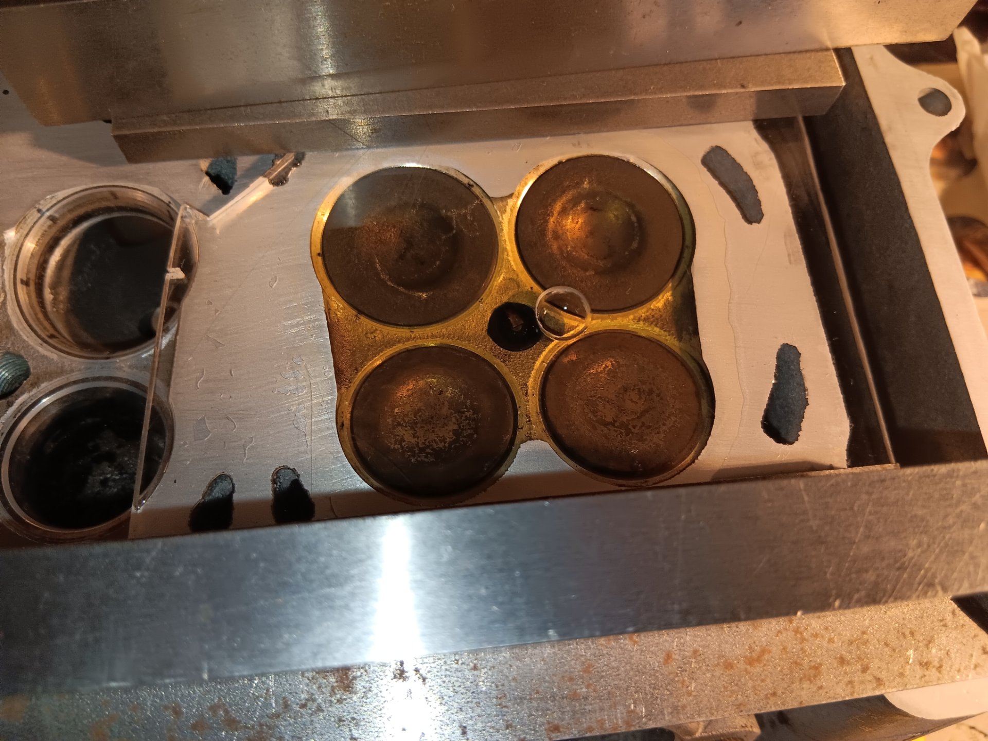 Einfahröl abgelassen. War sauberer, als ich jemals gebrauchtes gesehen hab. Deutlich weniger Abrieb an der Magnetschraube als beim letzten mal Einfahren nach Honen und Ventilsitze nachsetzen. Vermutlich war damals der Kreuzschliff doch einiges gröber.