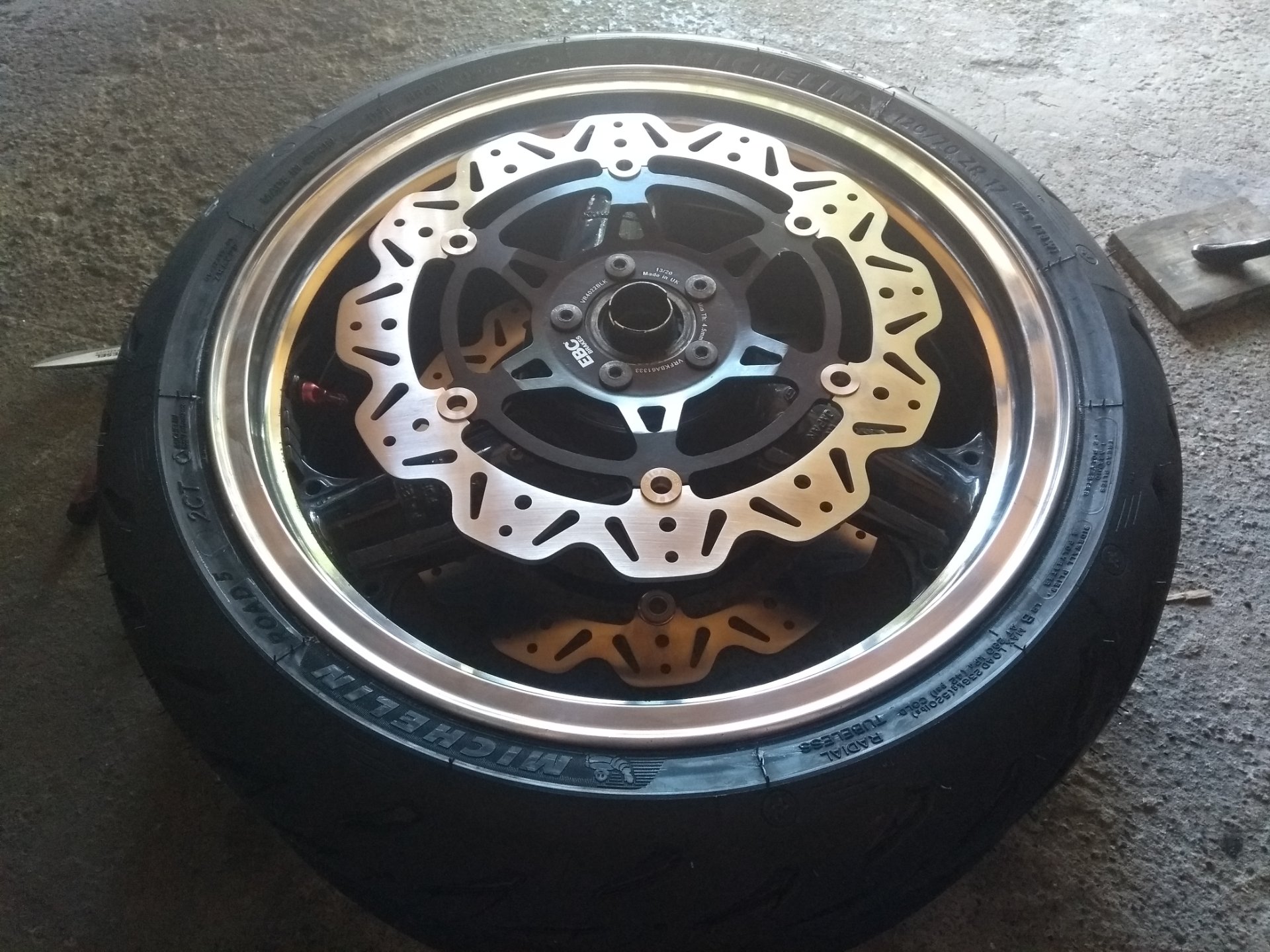 Jetzt sind ringsum EBC-Wavescheiben, vorne vollschwimmend, verbaut.