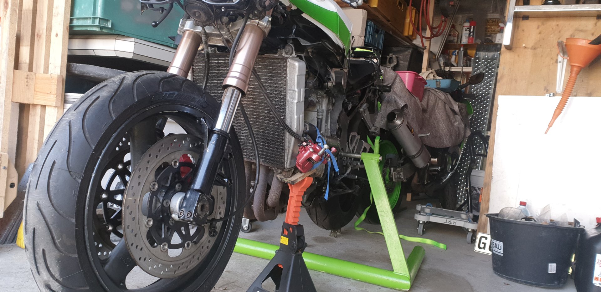 Als ich letztens beim aufräumen meiner Lagergarage ( es hatte reingeregnet) meinen alten Motor (einen Zx750 J Motor mit 12 000 Km wiedergefunden hatte ( hatte meiner J damals mit einem Schrauberkumpel einen 900B Motor verpasst). Kamen mir direkt wieder viele Erinnerungen an mein Mädchen wieder hoch (leider nicht nur gute, da ich einen Abflug in der Kurve auf nassem Laub hatte), danach war dann erst mal 10 Jahre Pause weil ich auch einfach nicht mehr wollte. Nachdem ich mir aber letztes Jahr günstig ein paar Unfall zx600-derter schießen konnte und diese Hobbymäßig wieder herrichten und auch fahren konnte. war ich wieder infiziert