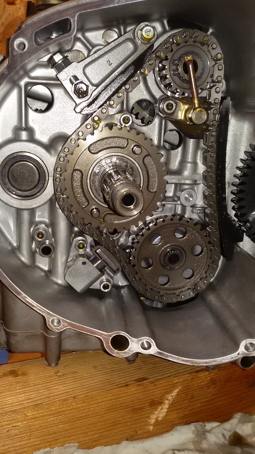 Habe eine größere Ritzelabdeckung. Nun wird das Kettenfett nicht mehr gegen Anlasser und Motorblock geschleudert.