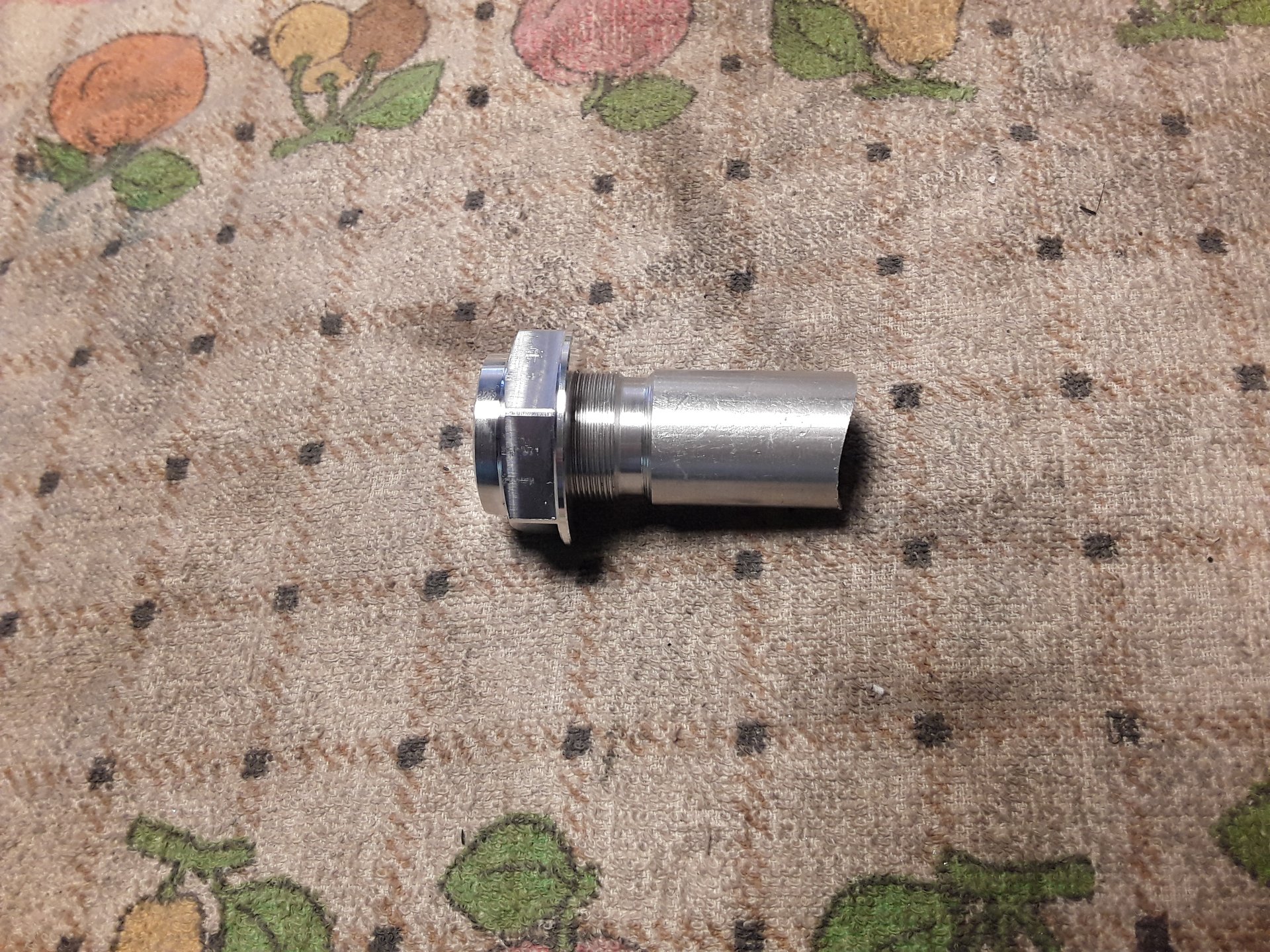 Hatte ich erstmal nur aus Spaß gemacht. Dann gedacht, warum nicht eloxieren und benutzen. Der örtliche Eloxierer meinte, geht nicht zu spannen. Daher das Außengewinde, was eigentlich nur zum Prüfen war, vorgeschlagen zum Anklemmen.