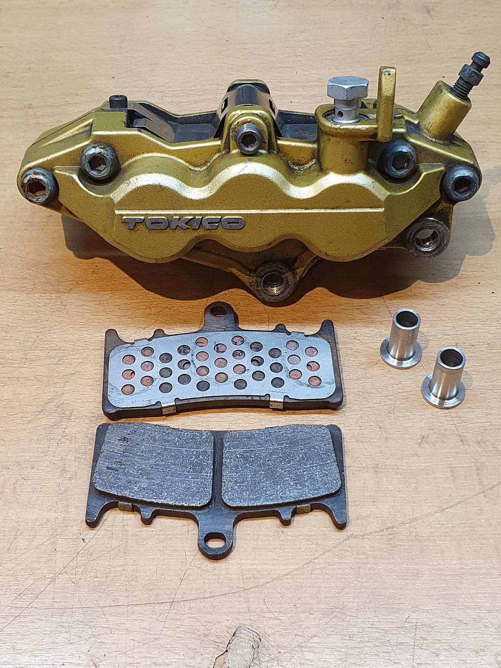 Die originalen Tokico Bremssättel mit 4 Kolben (34/27mm) 63mm Aufnahme