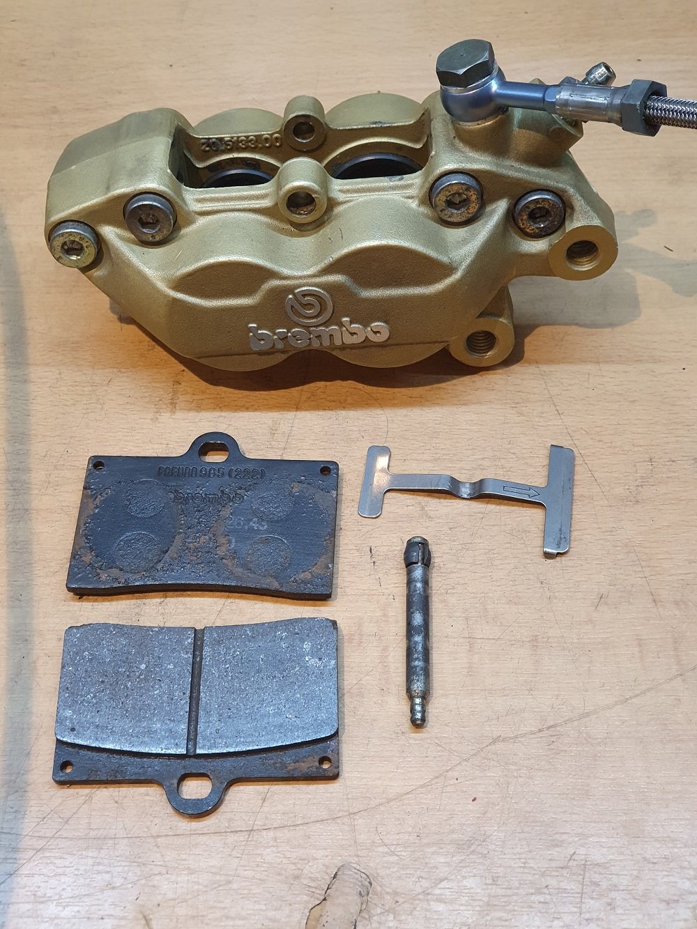 Mein Kumpel Andy ist ein "Gewichtsfetischist" und baut sich die klassischen 40mm Brembo P4 34/30 an seine Renn ZXR.